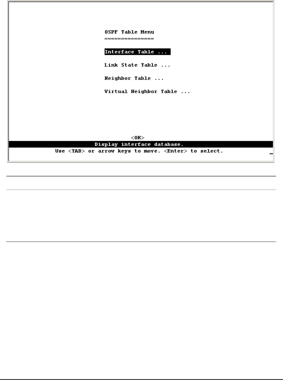Interface Table Displays interface OSPF status