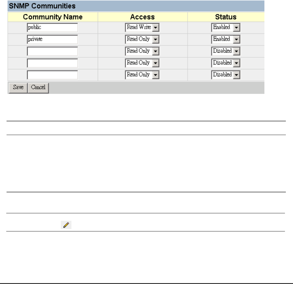 Use the SNMP Configuration screen to display and modify parameters for the Simple Network