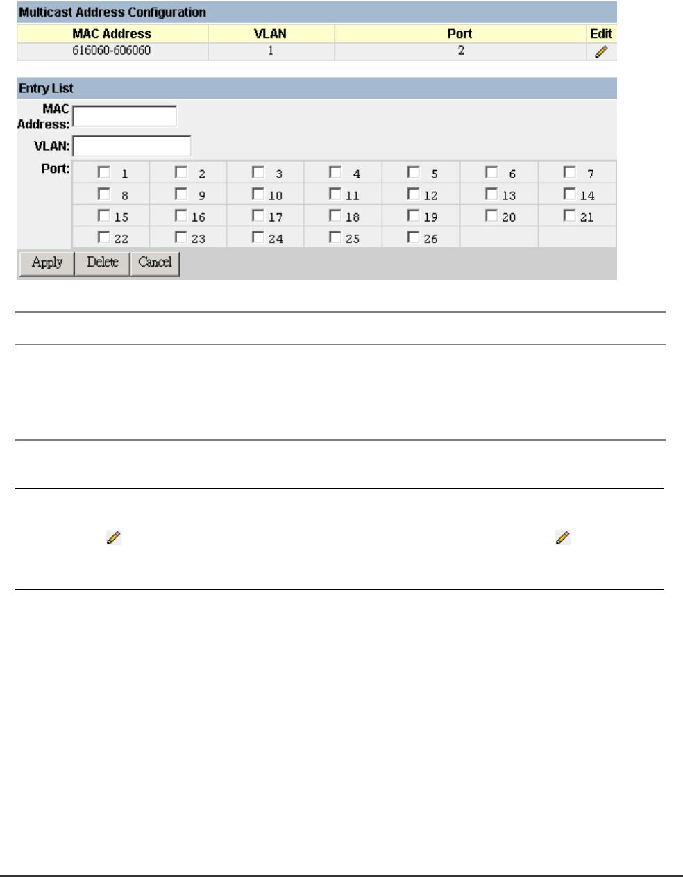 corresponding VLAN, select the required ports, and then press Apply. To delete an address,