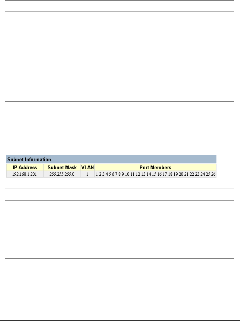 Multicast Table Displays all the multicast groups active on this switch, including the multicast IP address