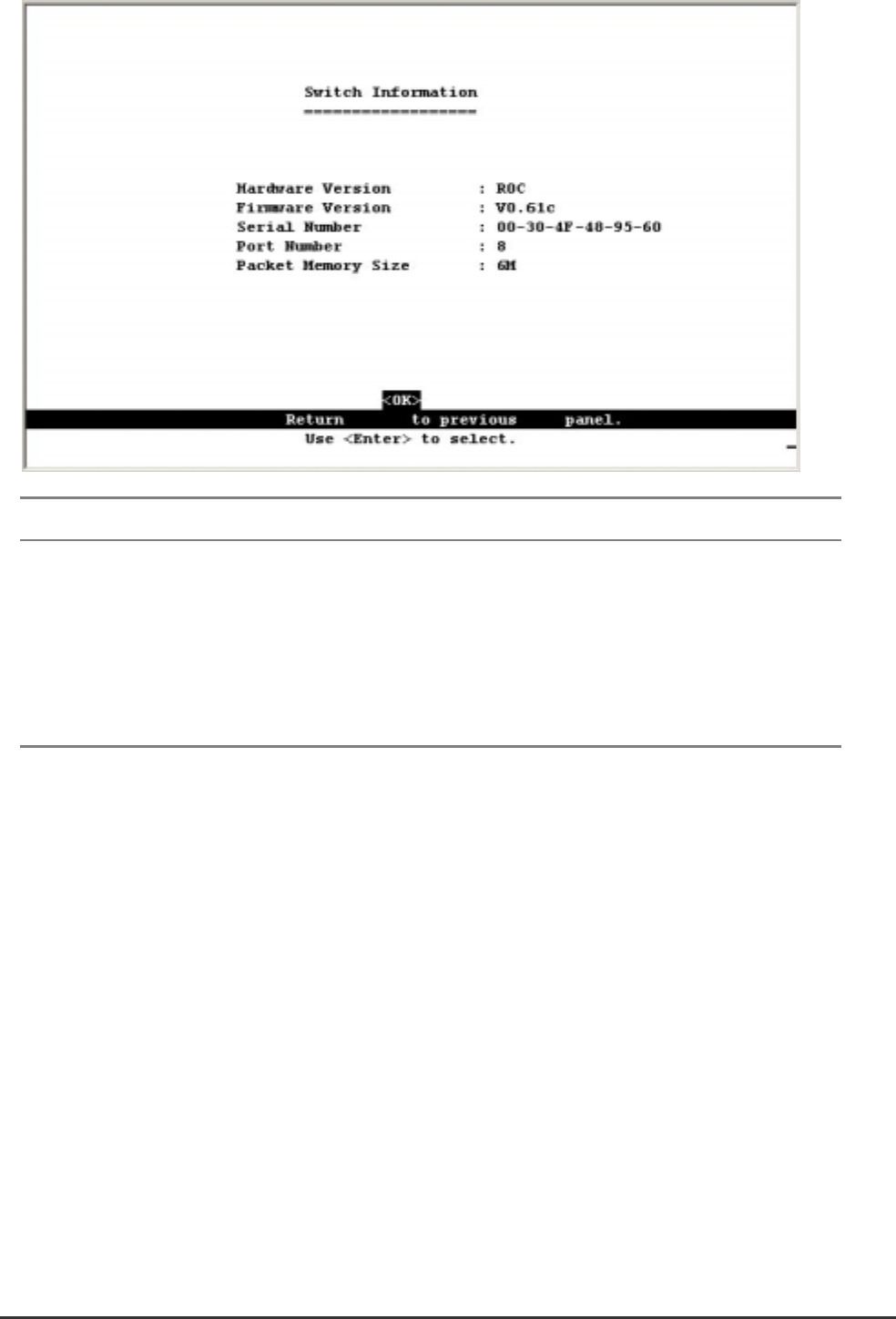Packet Memory Size Shows memory size for packet buffer. It is always 6M bytes.