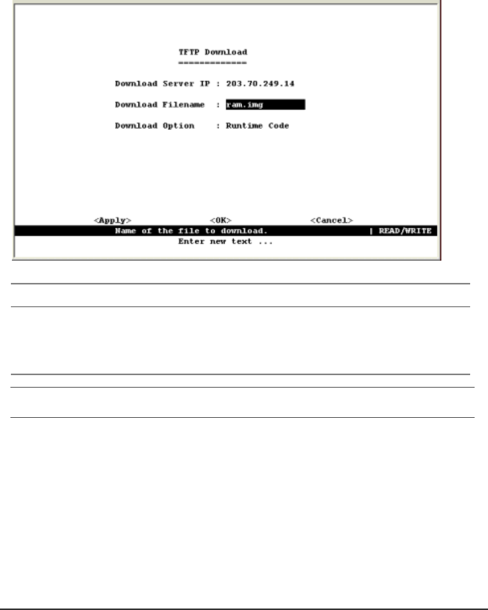 Use the TFTP Download menu to load software updates to permanent flash ROM in the switch. The