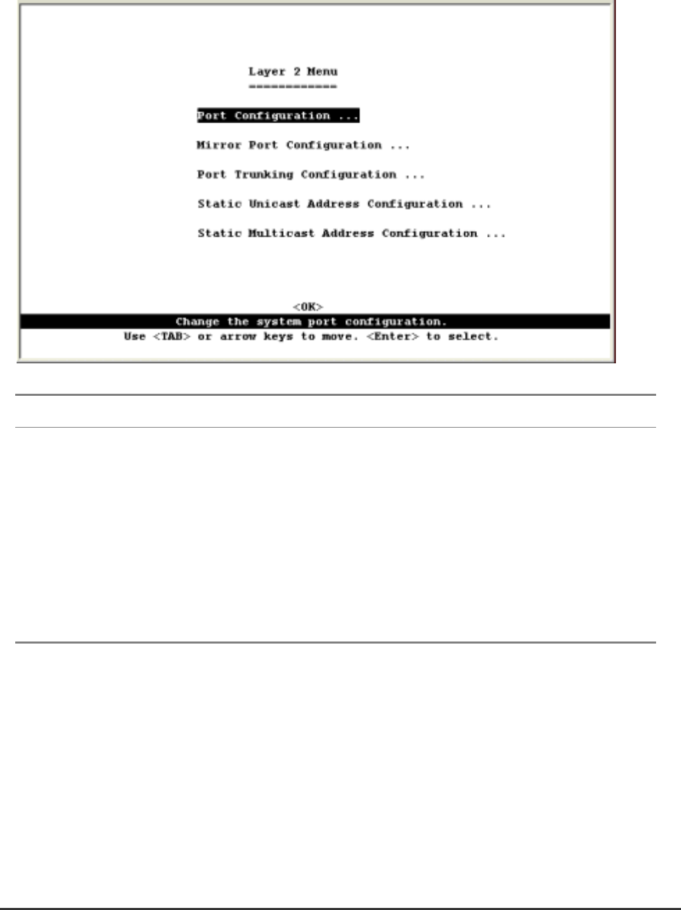 The Layer 2 menu contains options for port configuration, port mirroring, port trunking and static