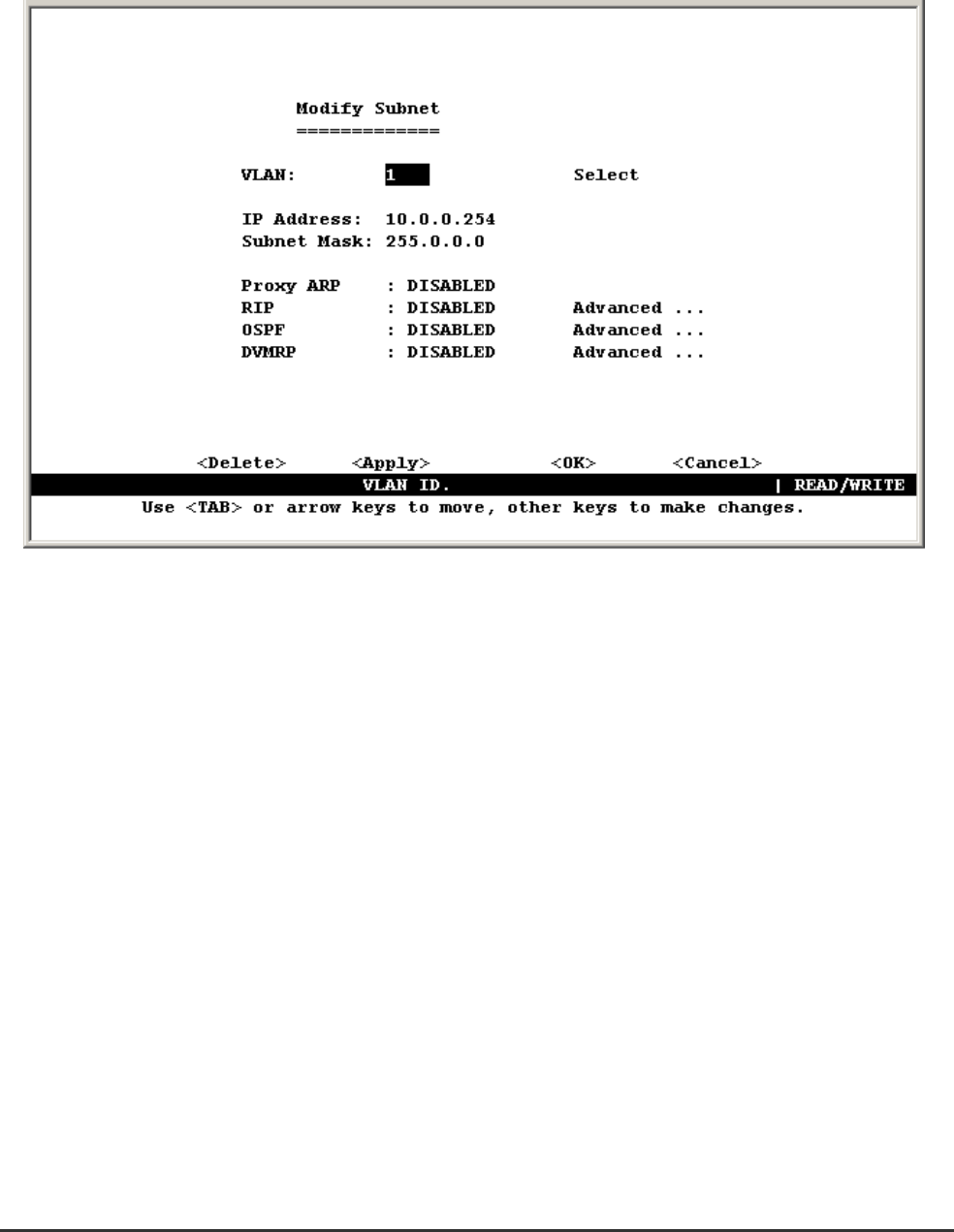 Enter. The Modify Subnet screen is nearly the same as the Add Subnet screen. However, it also includes