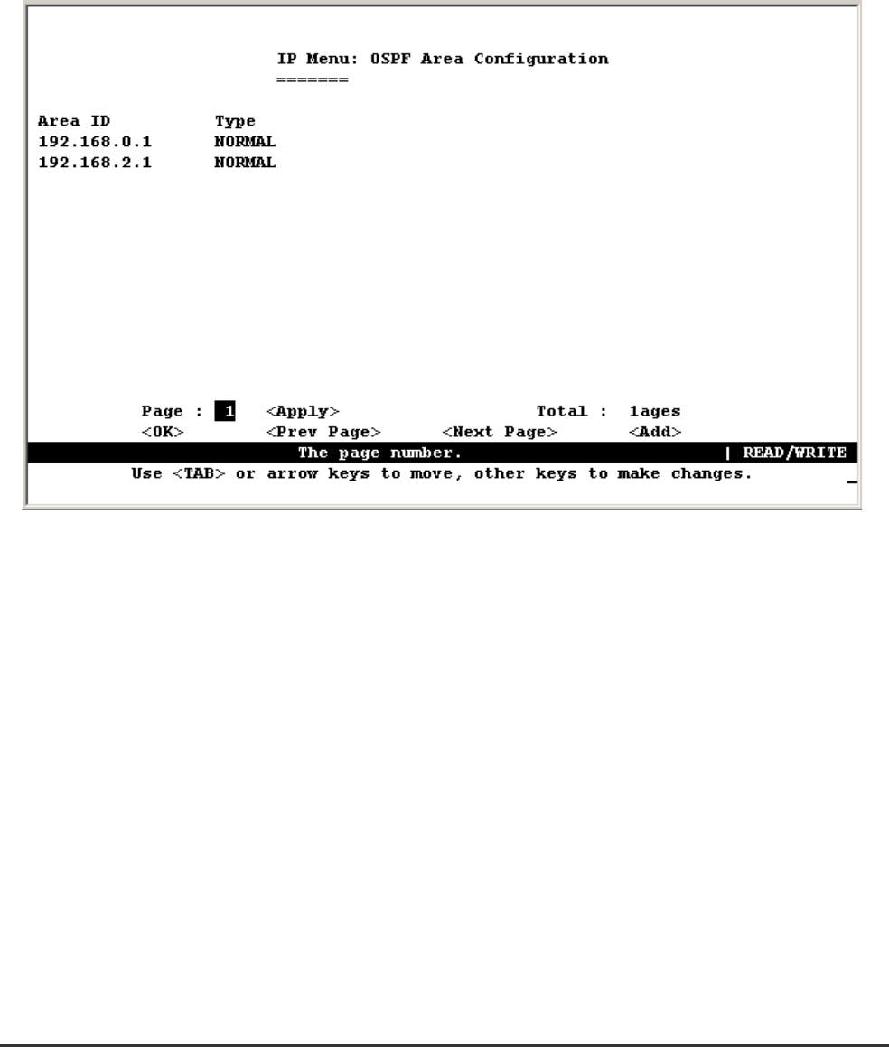 specify the Area ID in this table. Each entry in this table identifies a logical group of OSPF routers that
