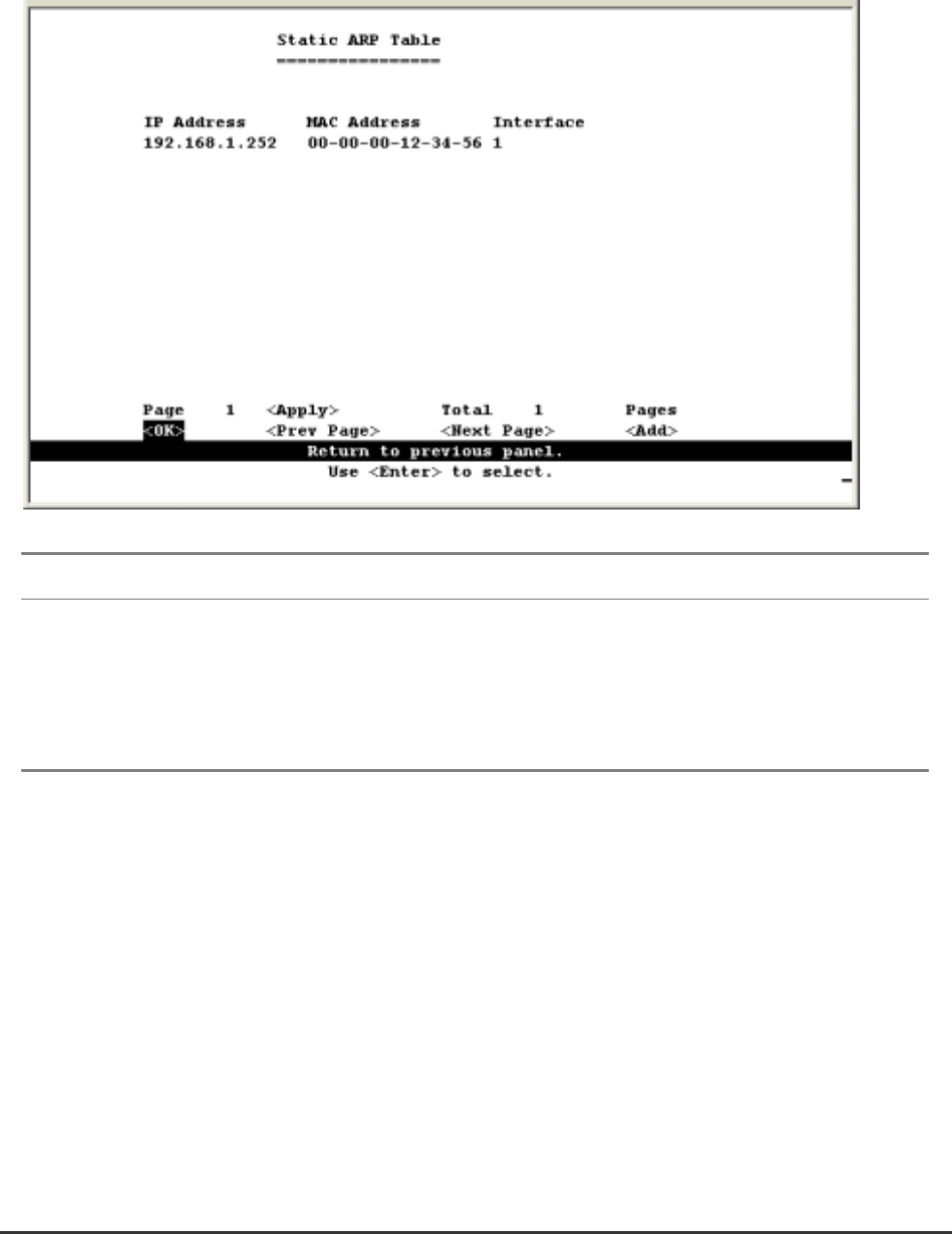 Use the following screen to display or edit entries in the Static ARP Table. Entries added to this table are