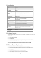 1.3 Specification Product 54Mbps Wireless USB Adapter Models WL-U356 Attach Interface USB 2.0 A-type connector LED Indicator Link/ACT Operating Frequency / Channel 2.412~2.462GHz (FCC, Canada) / 11 Channels 2.412~2.4835GHz (Japan, TELEC) / 14 Channels 2.412~2.472GHz (Euro ETSI) / 13 Channels RF Modulation OFDM with BPSK, QPSK, 16QAM, 64QAM RF Output Power 15dBm (Typical) 802.11b: 1, 2, 5.5, 11Mbps Data Rate 802.