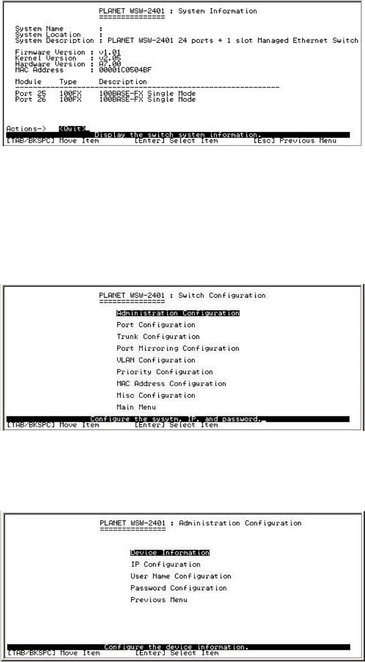 In Administration Configuration, you can configuration system parameter, IP address, login