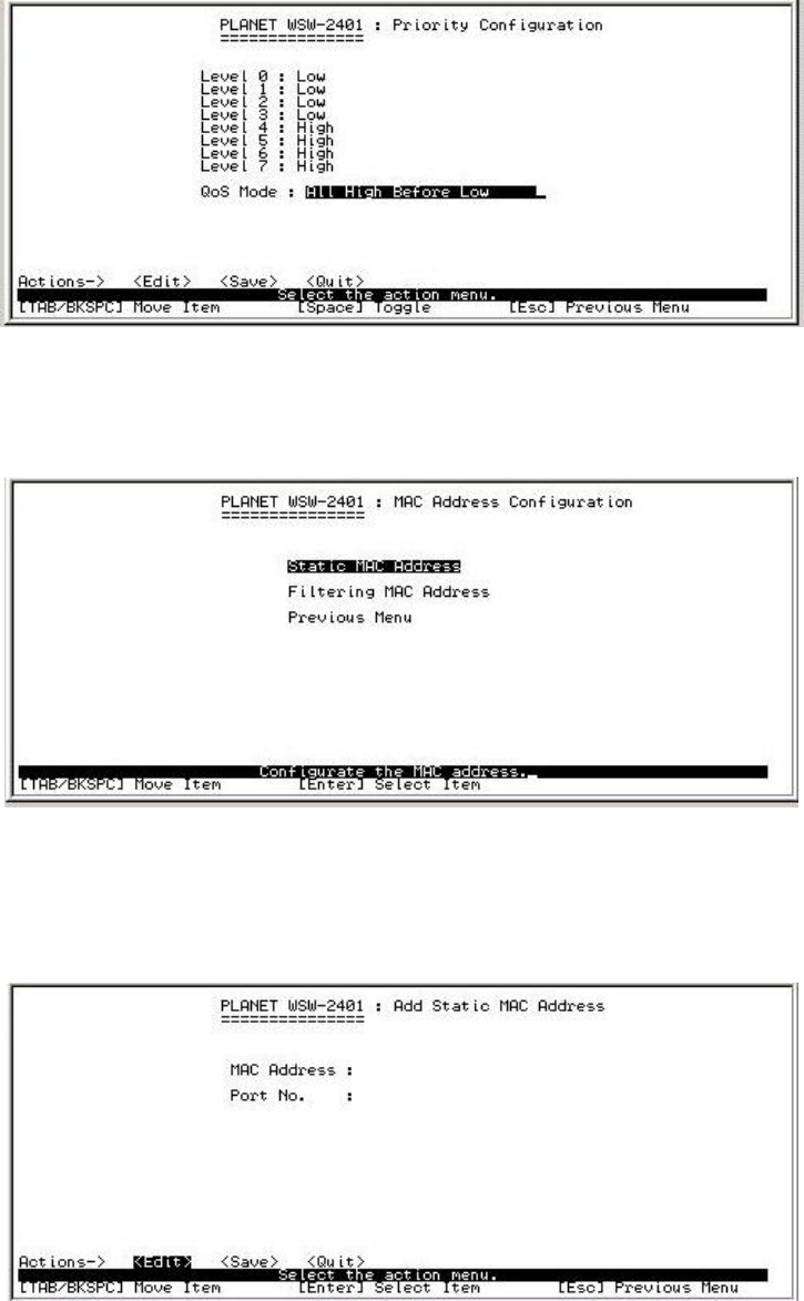 There are three sub-menus in MAC Address Configuration, which is Static MAC Address,