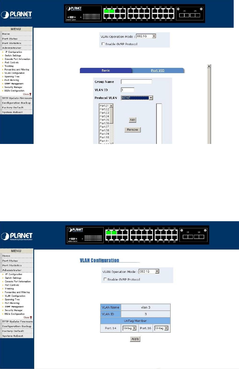 Ø Select 802.1Q mode from VLAN Operation Mode