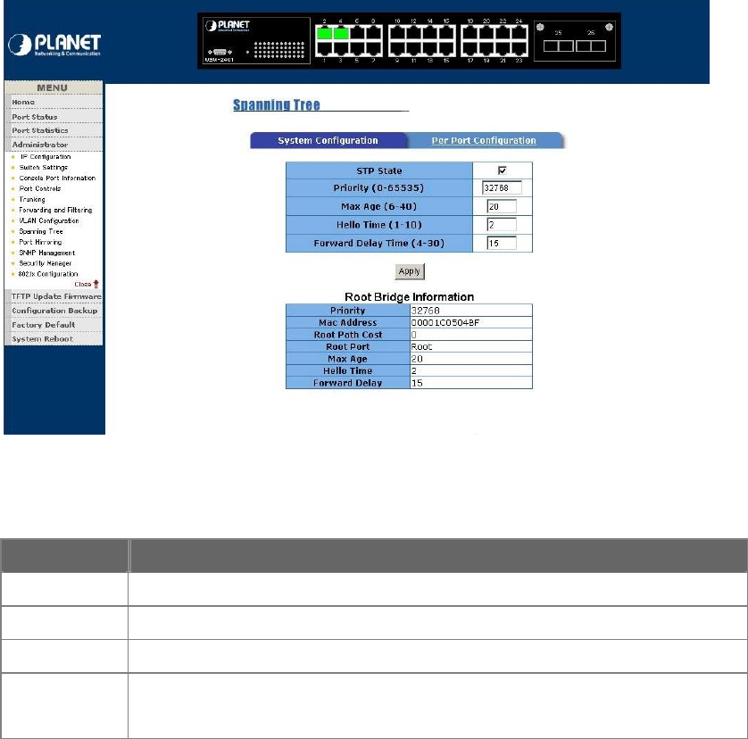 Hello Time Allow changing the Hello Time. The Hello Time range is 1 to 10.