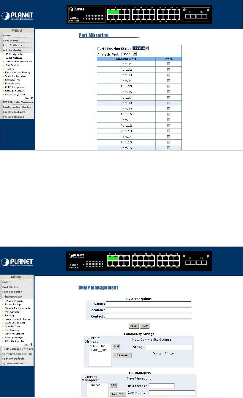 Ø Port Mirroring State: provide disable, RX, TX and Both port Mirroring function