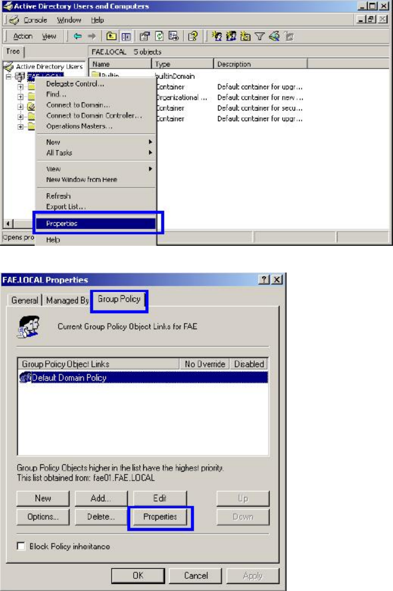 13. Select “Group Policy” tab and click “Properties” to continue.