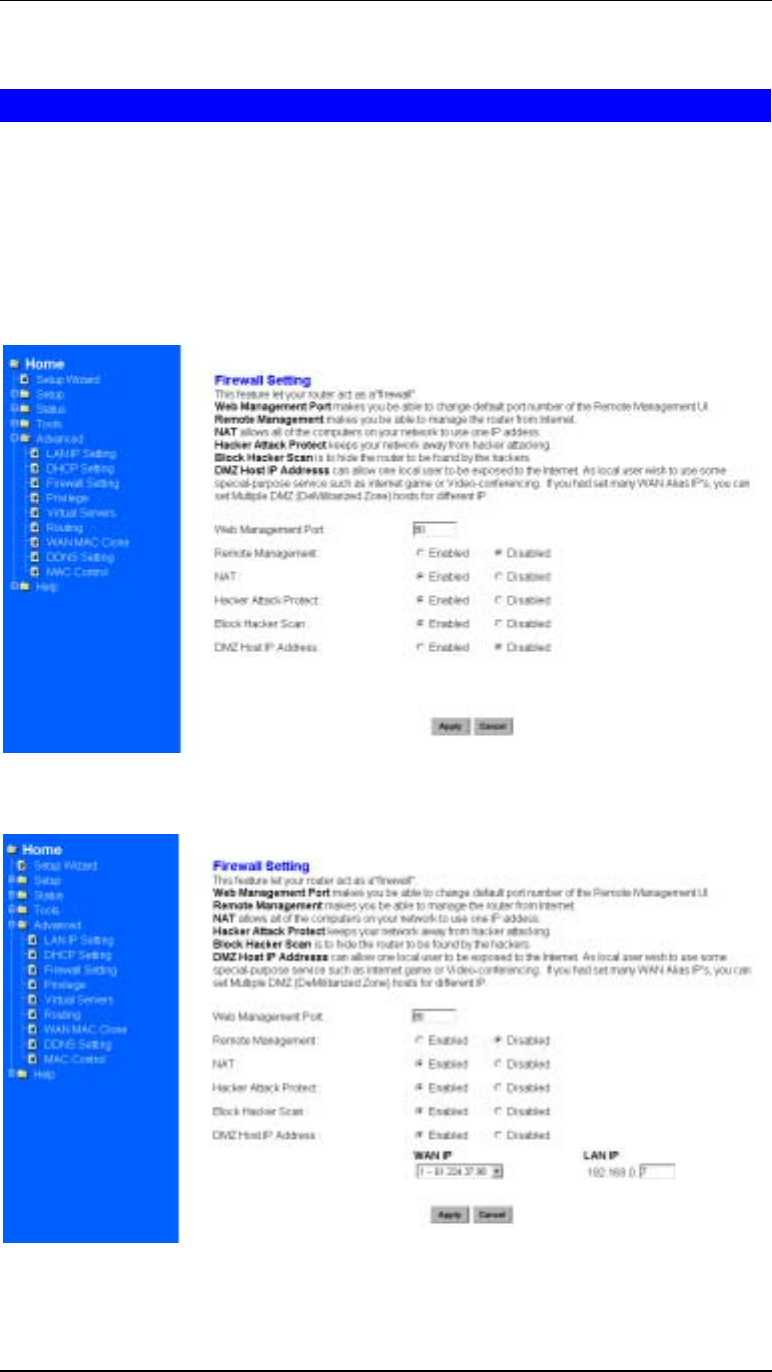 If you make the DMZ Host IP Address enabled, the following screen will appear.
