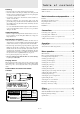 Table of contents Cleaning IMPORTANT SAFETY INFORMATION ................................... 2 • Disconnect the power cable (mains lead) from the unit. • Clean the cabinet of the unit periodically with a damp cloth. If heavily soiled, use a mild detergent. Never use strong detergents or solvents such as alcohol or thinner. • Use a blower or lens paper to clean the lens, and be careful not to scratch or mar the lens.