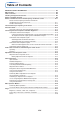 Table of Contents IMPORTANT SAFETY INFORMATION ................................................................................... E-2 Major Features ....................................................................................................................... E-4 Table of Contents ................................................................................................................... E-5 Checking the Supplied Accessories ..................................................................