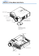 TA TU S S TA N D B Y S TA N D B Y A U TO S O U R C E Names of the Main Unit Parts S Zoom ring [E-26] Focus ring [E-27] Exhaust vents Ventilation slots Remote control sensor [E-13] Adjuster button [E-27] (Also on opposite side) Lens Lens cap Remove before use. Attach the lens cap after use to protect the lens.