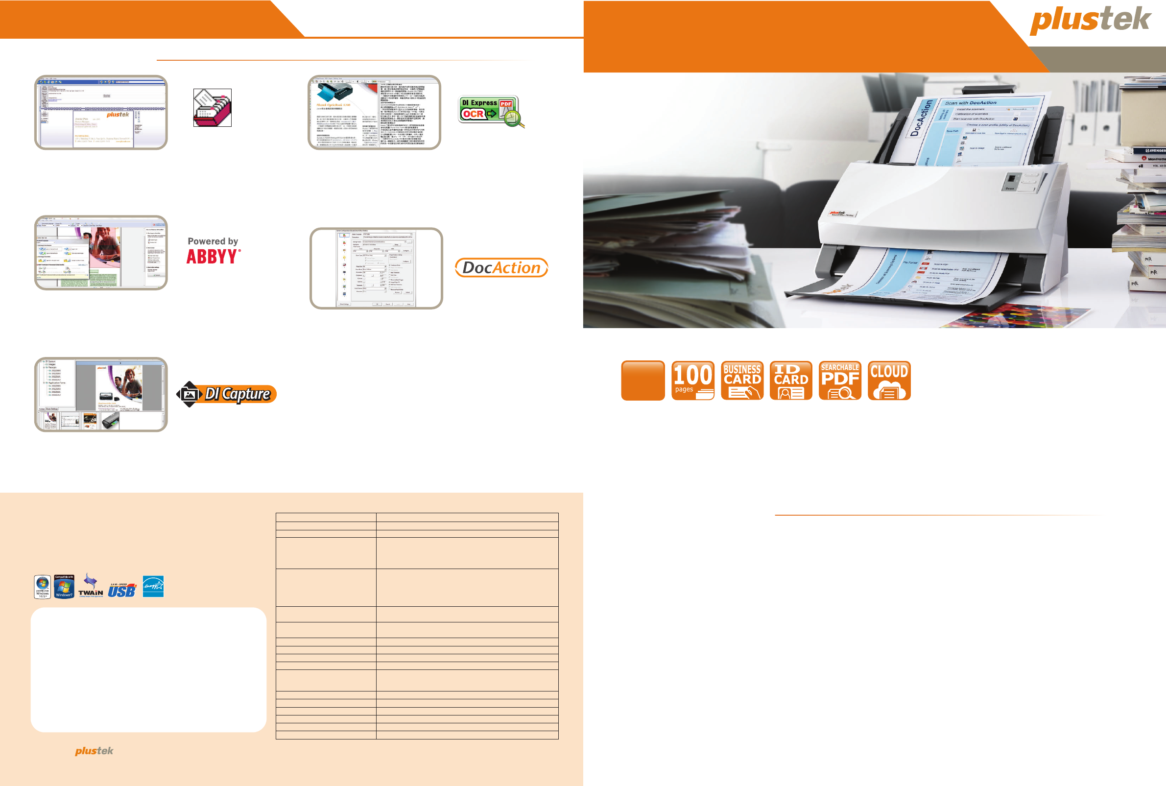 �• Single touch scanning to popular formats including Searchable PDF, Word, Excel, JPEG and TIFF