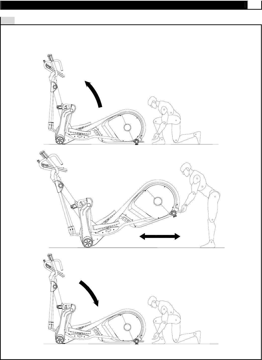 ce3.7 elliptical Trainer simply lift the back end and roll it away to the desired location, as shown.