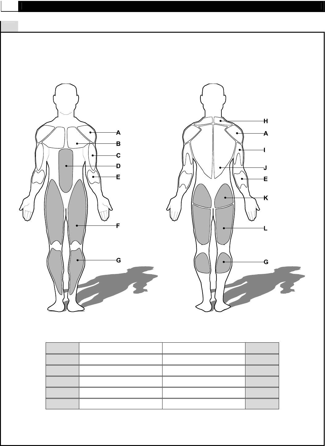 muscle groups are shown in gray color on the chart below.