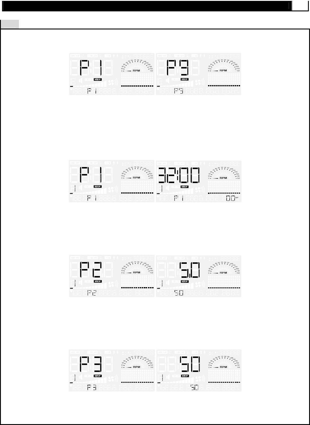 After you have selected “P2- Target distance program”, The “DISTANCE“ display will show the DISTANCE setting of 3.2mph or