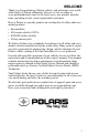WELCOME Thank you for purchasing a Polaris vehicle, and welcome to our worldwide family of Polaris enthusiasts. Be sure to visit us online at www.polarisindustries.com for the latest news, new product introductions, upcoming events, career opportunities and more. Here at Polaris we proudly produce an exciting line of utility and recreational products.