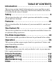 TABLE OF CONTENTS Introduction . . . . . . . . . . . . . . . . . . . . . . . . . . . . 5 This section contains helpful information for owners and drivers and illustrates the location of important identification numbers that should be recorded in the owner’s manual. Safety . . . . . . . . . . . . . . . . . . . . . . . . . . . . . . . . . 8 This section describes safe vehicle operation and identifies warning decals and their locations. Features . . . . . . . . . . . . . . . . . . . . . . . . . . . . . .
