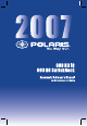 POLARIS and POLARIS THE WAY OUT are registered trademarks of Polaris Industries Inc. RIDER SELECT is a trademark of Polaris Industries Inc. Copyright 2005 Polaris Sales Inc. All information contained within this publication is based on the latest product information at the time of publication. Due to constant improvements in the design and quality of production components, some minor discrepancies may result between the actual vehicle and the information presented in this publication.