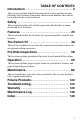 TABLE OF CONTENTS Introduction . . . . . . . . . . . . . . . . . . . . . . . . . . . . 4 This section contains helpful information for owners and drivers and illustrates the location of important identification numbers that should be recorded in the owner's manual. Safety . . . . . . . . . . . . . . . . . . . . . . . . . . . . . . . . . 6 This section describes safe vehicle operation and identifies warning decals and their locations. Features . . . . . . . . . . . . . . . . . . . . . . . . . . . . . .