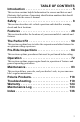 TABLE OF CONTENTS Introduction . . . . . . . . . . . . . . . . . . . . . . . . . . . . 5 This section contains helpful information for owners and drivers and illustrates the location of important identification numbers that should be recorded in the owner’s manual. Safety . . . . . . . . . . . . . . . . . . . . . . . . . . . . . . . . . 8 This section describes safe vehicle operation and identifies warning decals and their locations. Features . . . . . . . . . . . . . . . . . . . . . . . . . . . . . .