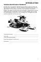INTRODUCTION Vehicle Identification Numbers Record your snowmobile’s identification numbers and key number in the spaces provided below. The key number is stamped on the spare key. The number on the rubber-coated key is in the form of raised dots. Remove the spare key and store it in a safe place. An ignition key can be duplicated only by ordering a Polaris key blank (using your key number) and mating it with one of your existing keys. The ignition switch must be replaced if all keys are lost.