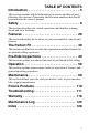 TABLE OF CONTENTS Introduction . . . . . . . . . . . . . . . . . . . . . . . . . . . . 5 This section contains helpful information for owners and drivers and illustrates the location of important identification numbers that should be recorded in the owner’s manual. Safety . . . . . . . . . . . . . . . . . . . . . . . . . . . . . . . . . 8 This section describes safe vehicle operation and identifies warning decals and their locations. Features . . . . . . . . . . . . . . . . . . . . . . . . . . . . . .