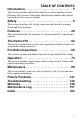 TABLE OF CONTENTS Introduction . . . . . . . . . . . . . . . . . . . . . . . . . . . . 5 This section contains helpful information for owners and drivers and illustrates the location of important identification numbers that should be recorded in the owner’s manual. Safety . . . . . . . . . . . . . . . . . . . . . . . . . . . . . . . . . 8 This section describes safe vehicle operation and identifies warning decals and their locations. Features . . . . . . . . . . . . . . . . . . . . . . . . . . . . . .