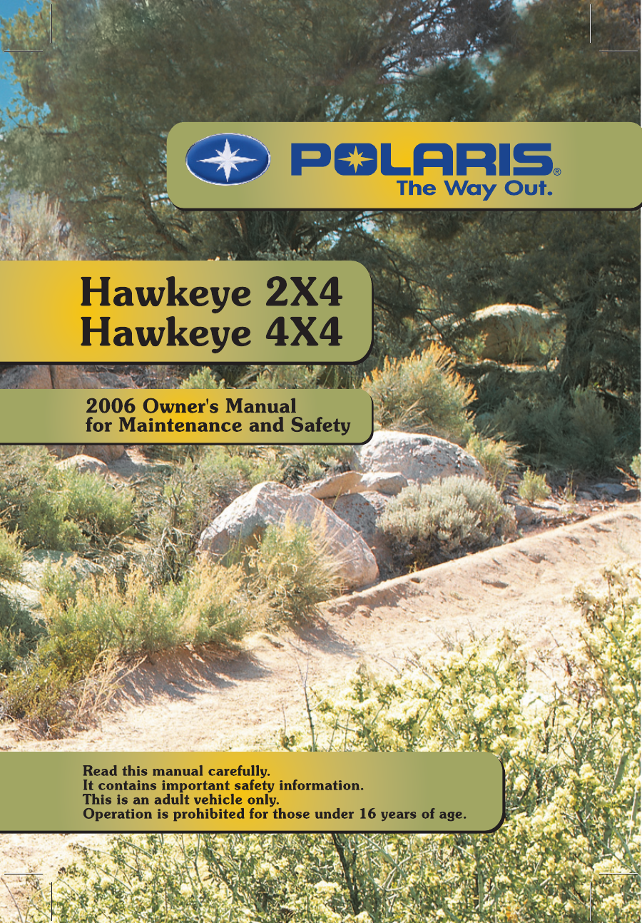 Operator Safety SAFETY WARNING Serious injury or death can result if you do not follow these instructions and procedures, which are outlined in further detail within your owner’s manual. S Read this manual and all labels carefully, and follow the operating procedures described. S Never operate an ATV without proper instruction. Take a training course. Purchasers of a new Polaris ATV and their eligible family members are entitled to take the ATV RiderCoursesm.