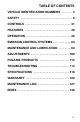 TABLE OF CONTENTS VEHICLE IDENTIFICATION NUMBERS . . . . . . . 5 SAFETY . . . . . . . . . . . . . . . . . . . . . . . . . . . . . . . . . . . 6 CONTROLS . . . . . . . . . . . . . . . . . . . . . . . . . . . . . . . 31 FEATURES . . . . . . . . . . . . . . . . . . . . . . . . . . . . . . . 39 OPERATION . . . . . . . . . . . . . . . . . . . . . . . . . . . . . . 42 EMISSION CONTROL SYSTEMS . . . . . . . . . . . . 63 MAINTENANCE AND LUBRICATION . . . . . . . . 64 ADJUSTMENTS . . . . . . . . . . . . . . . . . .