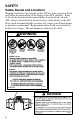 SAFETY Safety Decals and Locations WARNING Pushing reverse override button may cause sudden increases in power and traction if too much throttle is applied. Loss of control or forward flipover may result, especially in AWD. See Owner’s Manual. 7172564 AWD models ALL WHEEL DRIVE SWITCH Do not push switch to engage AWD if the rear wheels are spinning. This may cause severe drive shaft and clutch damage. See your Owner’s Manual. OVERRIDE SWITCH MANUFACTURED BY: POLARIS IND. INC.