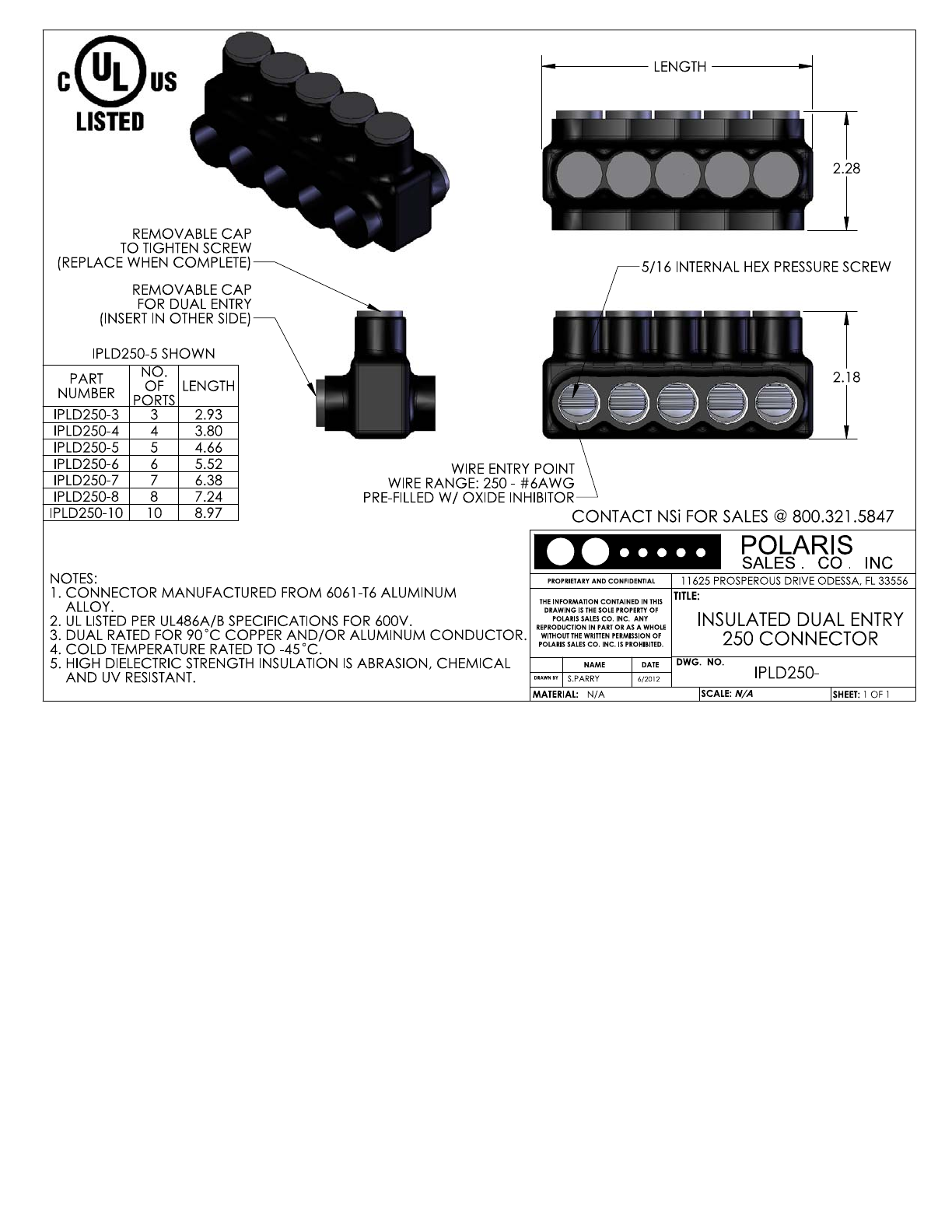 600 MCM - 4 AWG Bagged Insulated Multi-Tap Connector, Black