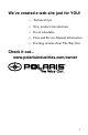 We’ve created a web site just for YOU! S Technical tips S New product introductions S Event schedules S Parts and Service Manual information S Exciting details about The Way Out Check it out... www.polarisindustries.