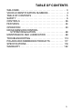 TABLE OF CONTENTS WELCOME . . . . . . . . . . . . . . . . . . . . . . . . . . . . . . . . . . . . . . . . 3 VEHICLE IDENTIFICATION NUMBERS . . . . . . . . . . . . . . . 4 TABLE OF CONTENTS . . . . . . . . . . . . . . . . . . . . . . . . . . . . . 5 SAFETY . . . . . . . . . . . . . . . . . . . . . . . . . . . . . . . . . . . . . . . . . . 6 CONTROLS . . . . . . . . . . . . . . . . . . . . . . . . . . . . . . . . . . . . . . 36 FEATURES . . . . . . . . . . . . . . . . . . . . . . . . . . . . . . . . . . . . .