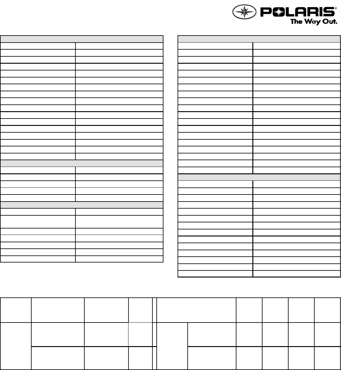 Industries 2003 All-Terrain Vehicles Specification Sheet