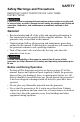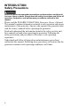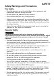 SAFETY Safety Warnings and Precautions Before and During Operation • Do not operate the generator in exposed locations where it will be subjected to wet conditions. • Do not touch the generator with wet hands, as this may cause severe electric shocks. • Do not pour water directly over the generator or wash it. • Do not use or store the generator in the rain or snow. • Do not cover the generator when in use.
