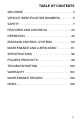 TABLE OF CONTENTS WELCOME . . . . . . . . . . . . . . . . . . . . . . . . . . . . . . . . . 3 VEHICLE IDENTIFICATION NUMBERS . . . . . . . . 6 SAFETY . . . . . . . . . . . . . . . . . . . . . . . . . . . . . . . . . . . 7 FEATURES AND CONTROLS . . . . . . . . . . . . . . . 33 OPERATION . . . . . . . . . . . . . . . . . . . . . . . . . . . . . . 42 EMISSION CONTROL SYSTEMS . . . . . . . . . . . . 60 MAINTENANCE AND LUBRICATION . . . . . . . . . 61 SPECIFICATIONS . . . . . . . . . . . . . . . . . . . . . . .