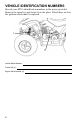 VEHICLE IDENTIFICATION NUMBERS Record your ATV’s identification numbers in the spaces provided. Remove the spare key and store it in a safe place. If both keys are lost, the ignition switch must be replaced.