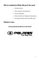 We’ve created a Web site just for you! S Technical tips S New product introductions S Event schedules S Parts and Service Manual information S Exciting details about The Way Out Check it out... www.polarisindustries.