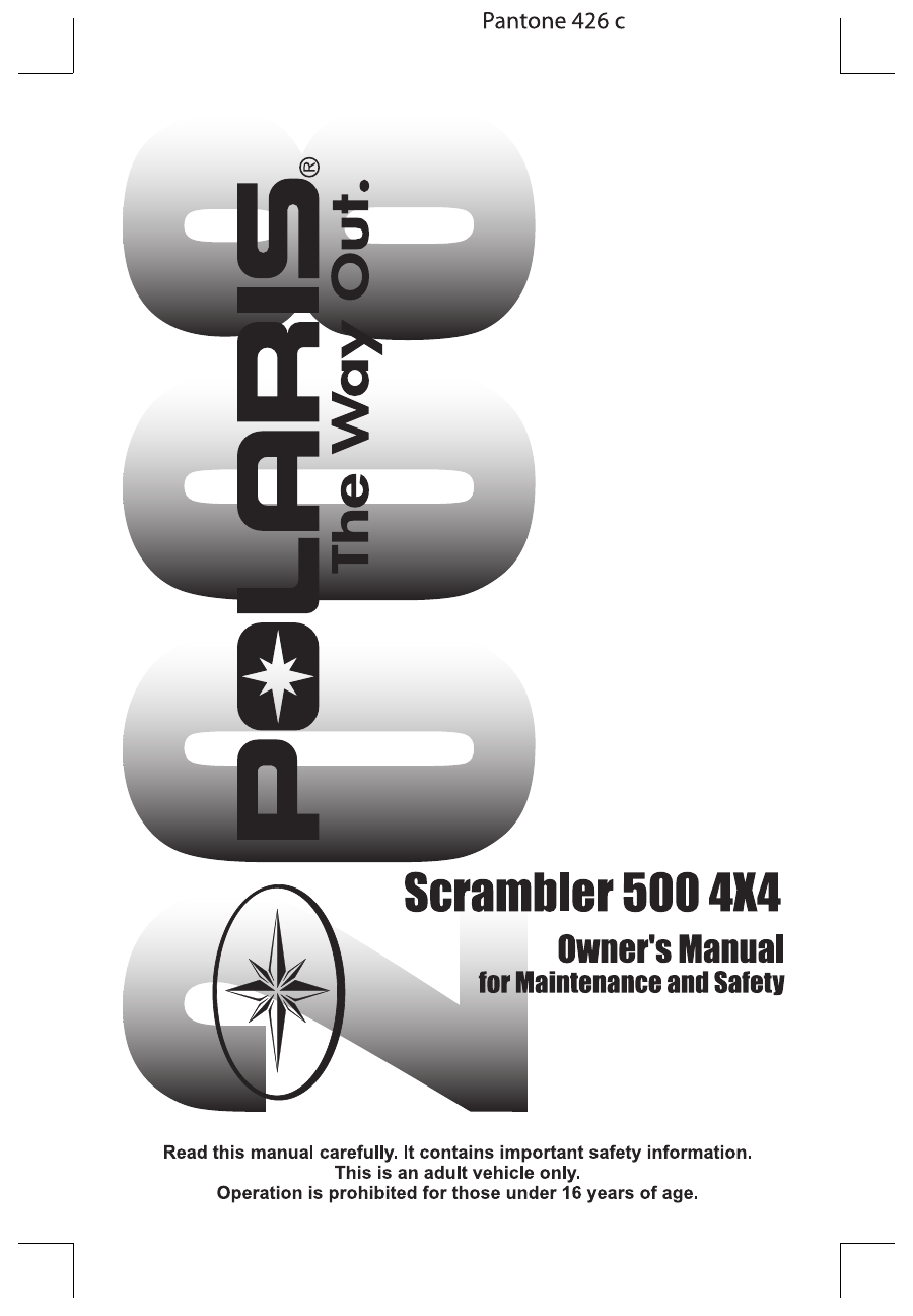 WELCOME Thank you for purchasing a Polaris vehicle, and welcome to our world-wide family of Polaris owners. We proudly produce an exciting line of utility and recreational products. S Snowmobiles S All-terrain vehicles (ATVs) S RANGER utility vehicles S Victory motorcycles We believe Polaris sets a standard of excellence for all utility and recreational vehicles manufactured in the world today.