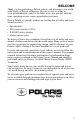 WELCOME Thank you for purchasing a Polaris vehicle, and welcome to our worldwide family of Polaris enthusiasts. Be sure to visit us online at www.polarisindustries.com for the latest news, new product introductions, upcoming events, career opportunities and more. Here at Polaris we proudly produce an exciting line of utility and recreational products.
