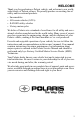 WELCOME Thank you for purchasing a Polaris vehicle, and welcome to our worldwide family of Polaris owners. We proudly produce an exciting line of utility and recreational products. • • • • Snowmobiles All-terrain vehicles (ATVs) RANGER utility vehicles Victory motorcycles We believe Polaris sets a standard of excellence for all utility and recreational vehicles manufactured in the world today.