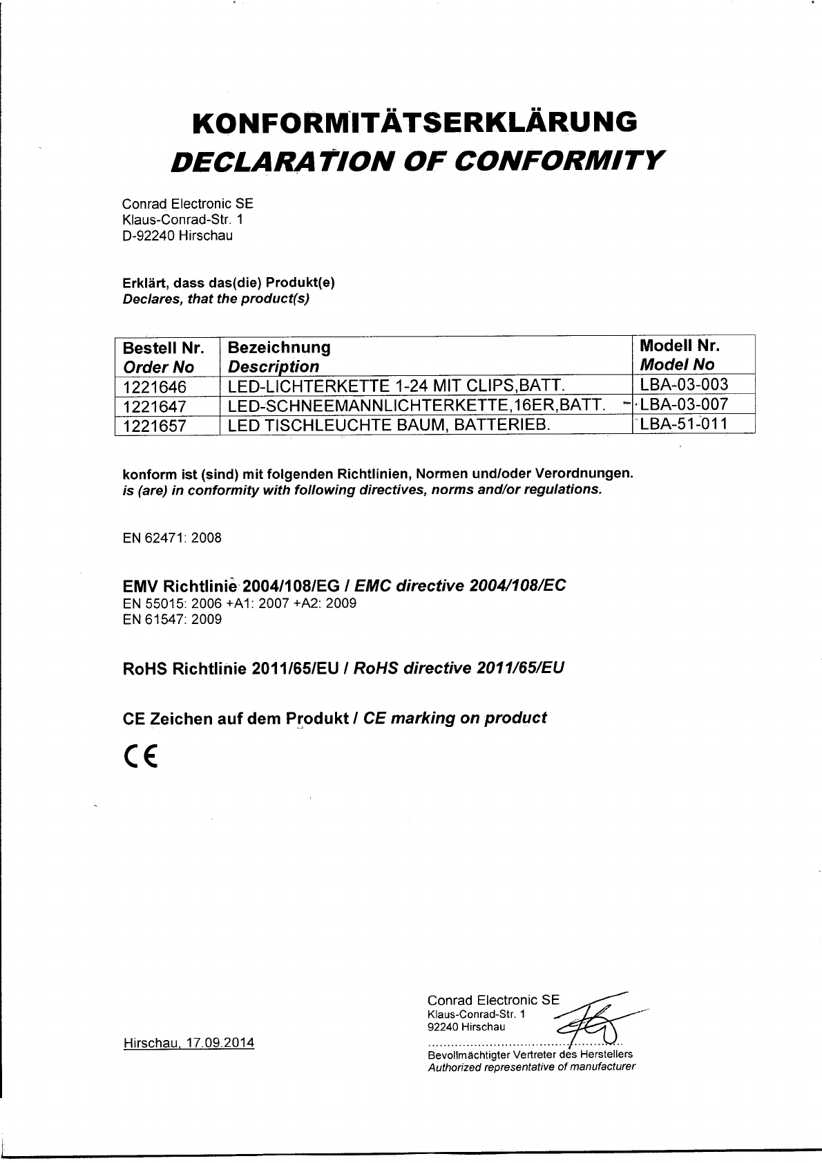 Declaration of conformity