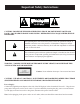 Important Safety Instructions CAUTION: TO REDUCE THE RISK OF ELECTRIC SHOCK, DO NOT REMOVE COVER (OR BACK). NO USE-SERVICEABLE PARTS INSIDE. REFER SERVICING TO QUALIFIED SERVICE PERSONNEL. The lightening flash with arrowhead symbol, within an equilateral triangle, is intended to alert the user to the presence of uninsulated “dangerous voltage” within the product’s enclosure that may be of sufficient magnitude to constitute a risk of electrical shock.