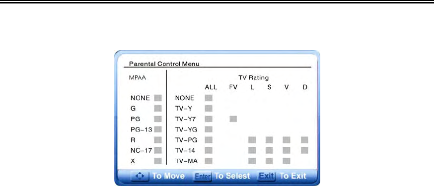 to set or cancel the rating. Press the Exit button to exit the setup menu.